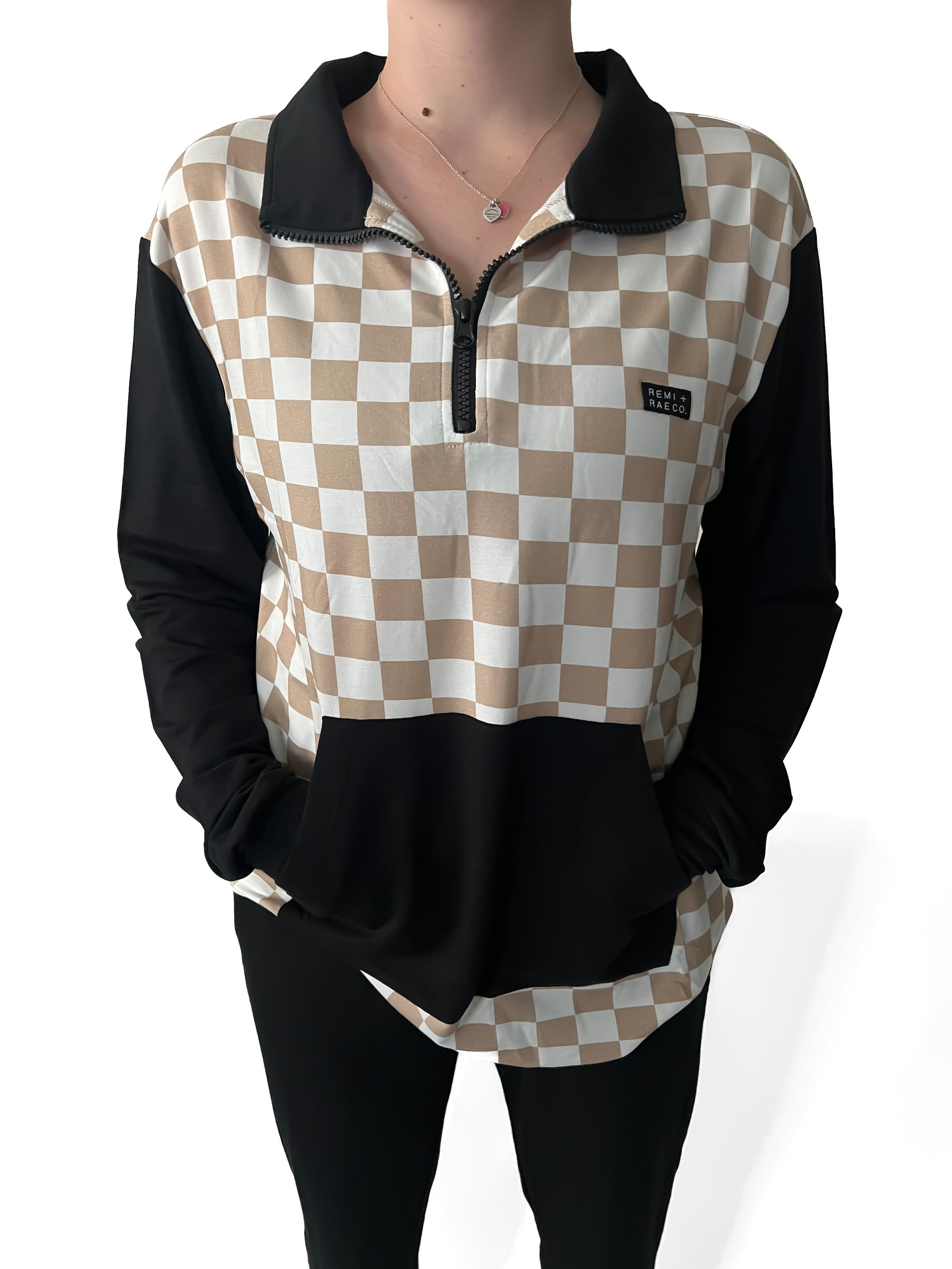 ADULT - BAMBOO CHECKERED COLOR BLOCK PULLOVER