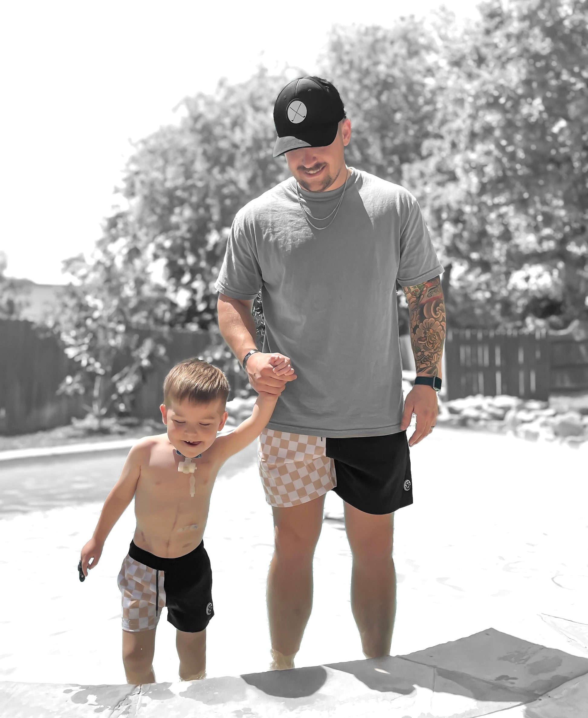 Take on the beach, the gym and all wet and dry in between. Our Hybrid Shorts feature a high quality, stretchy, water repelling material for functionality and your comfort. Match with your minis in Our Hybrid Shorts and create memories to last a lifetime!