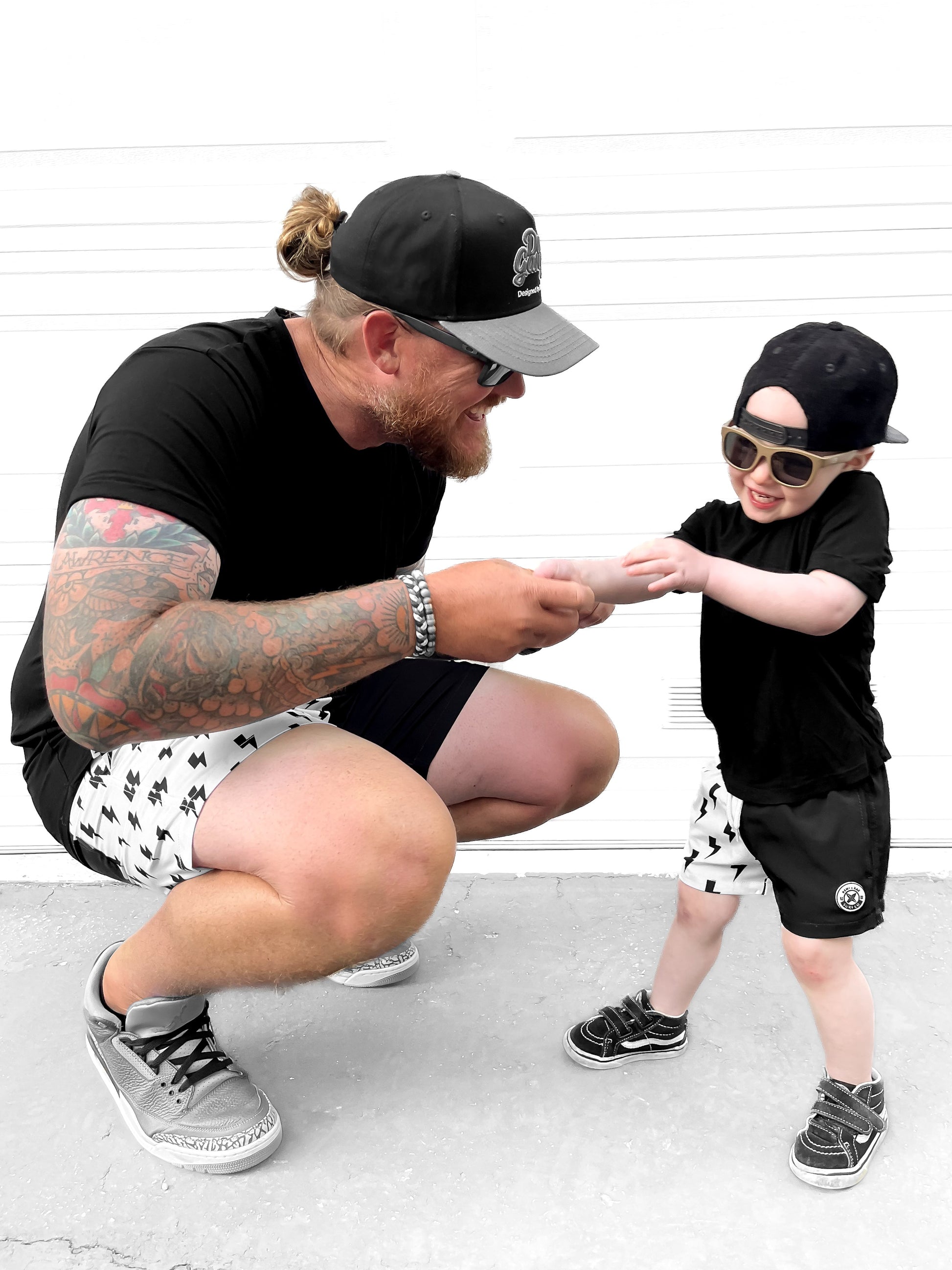 Take on the beach, the gym and all wet and dry in between. Our Hybrid Shorts feature a high quality, stretchy, water repelling material for functionality and your comfort. Match with your minis in Our Hybrid Shorts and create memories to last a lifetime!
