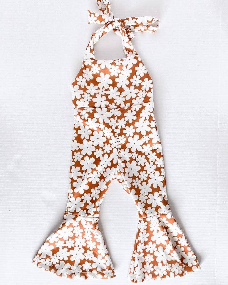 Get ready for Andi! This bell-bottoms jumpsuit is the perfect way to slay this season. With the halter neckties, it’s our go-to product for every newborn and toddler. The fit is comfortable and modern, so pair it with her favorite cardigan, and get ready to jump into trend!!