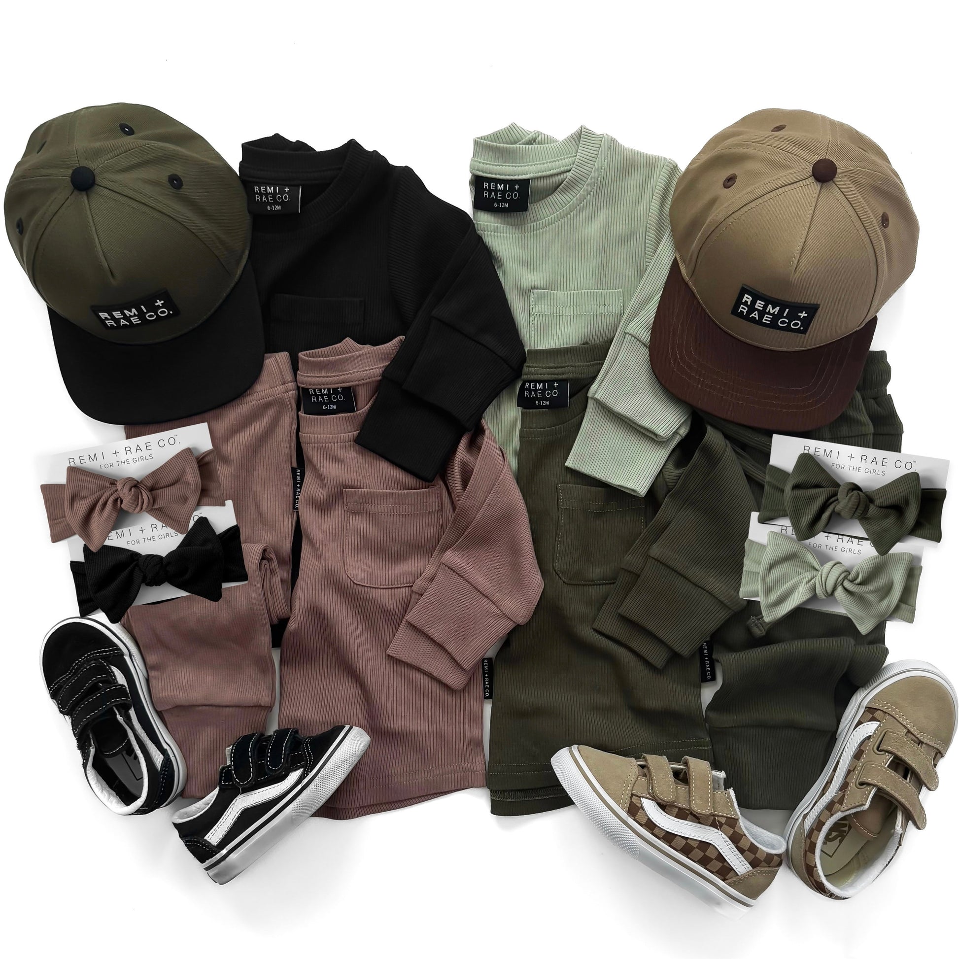 The Spring Breeze Collection, a Collection filled with the perfect transitional Winter to Spring colors. Our Bamboo Ribbed Long Sleeve Pocket Tees are made of our scrumptiously soft bamboo ribbed material; making them the best option for those with sensitive/eczema prone skin, and for those who love the extra comfort. Pair our Long Sleeves with all of our bottoms and matching Bow, or mix + match with our various options for an effortless look.