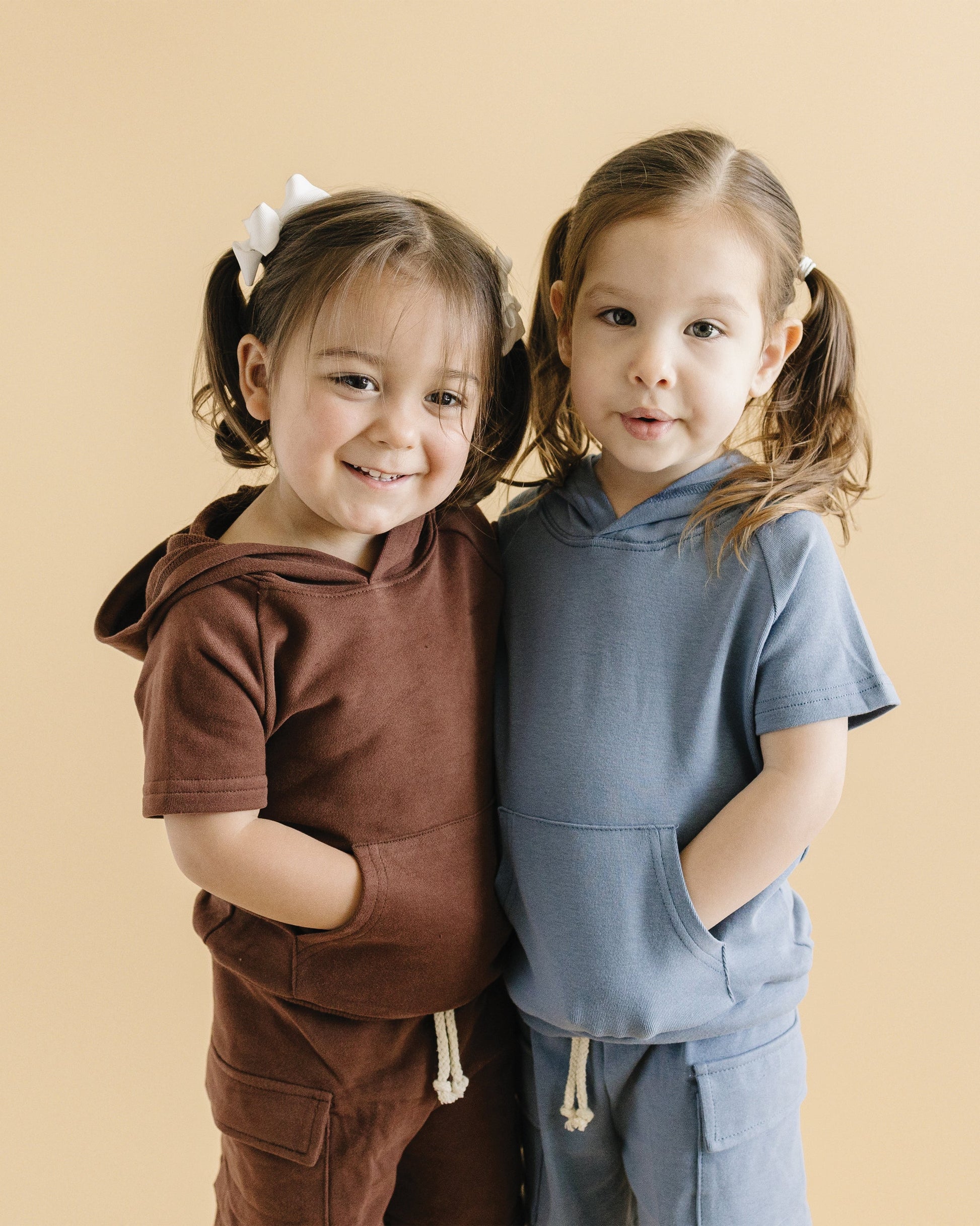 Bring a splash of color to their wardrobe with the Cargo Shorts Set in Blue. Made from soft, premium cotton fabric, this set offers all-day comfort and a breathable fit. The hoodie with a front pocket and the cargo shorts with convenient pockets make it both stylish and functional, ideal for active little ones. Available in 5 colors, this set is perfect for sibling matching, so your family can look effortlessly coordinated!