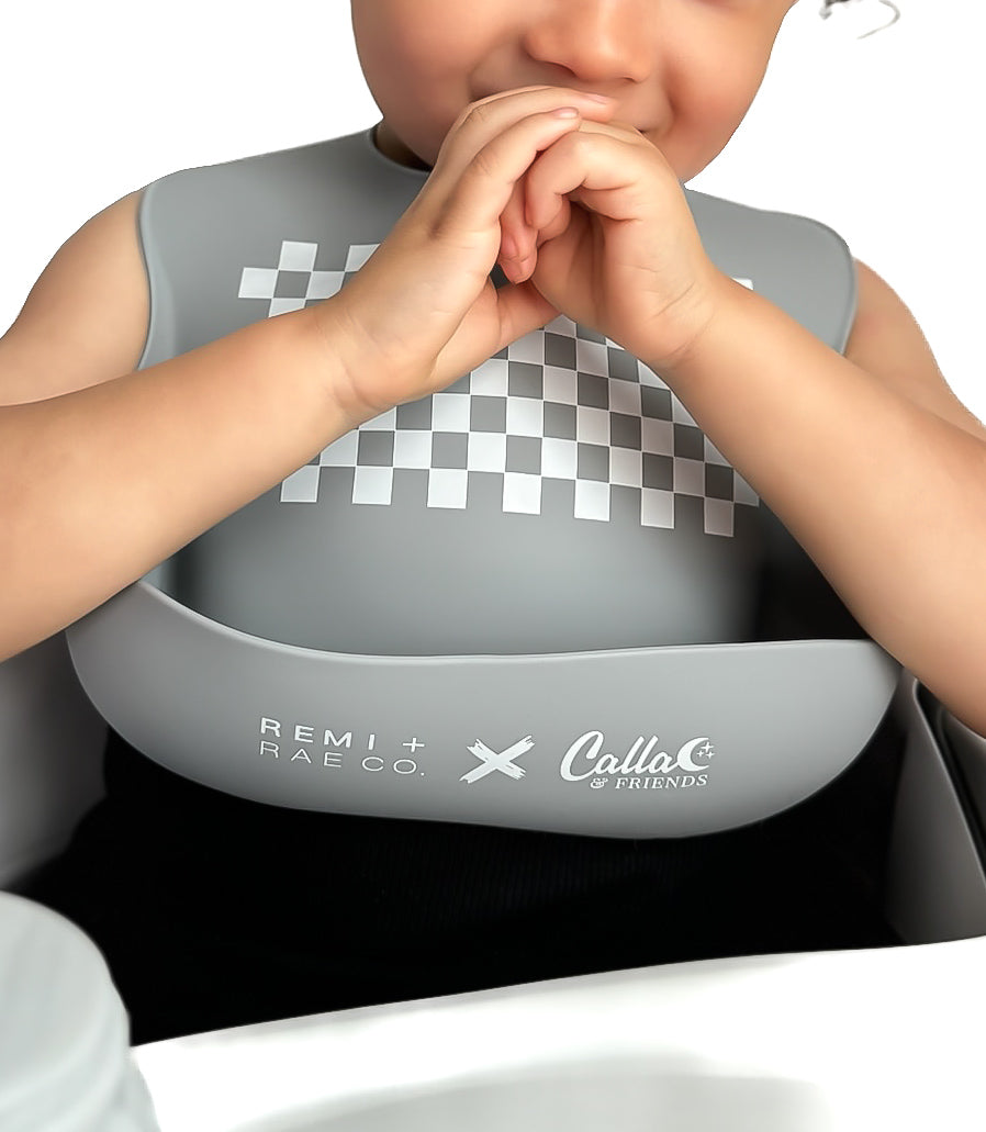 "Check out" another amazing collab between Remi + Rae Co and Calla & Friends! This limited edition collab combines functionality with style, offering you a bib that not only catches the mess but also looks rad while doing it!