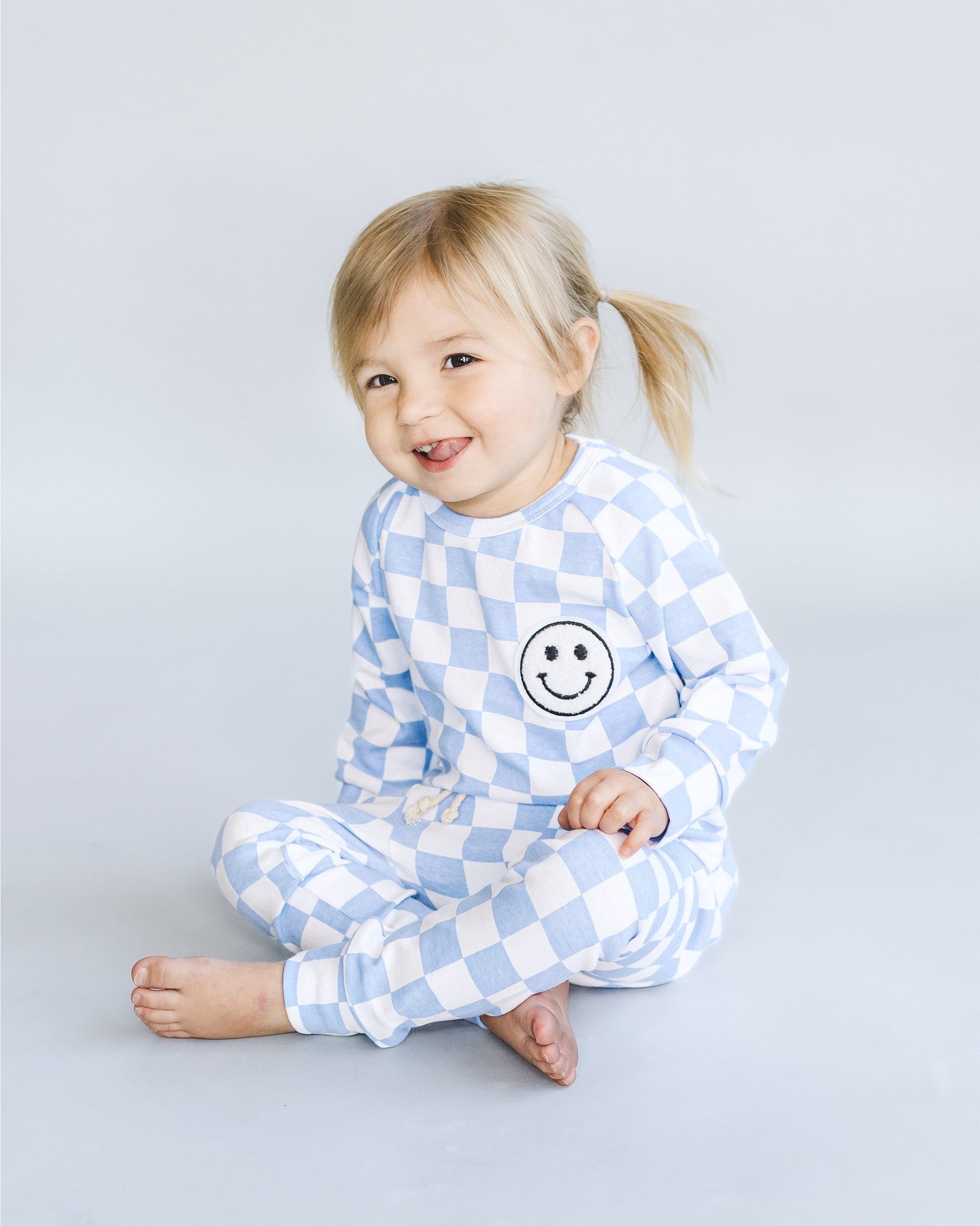 Our most popular checkered smiley sets are here with an adorable new color! Get cozy in these gender neutral comfy lounge sets for all your playtime fun! Made of high quality, oh-so-soft cotton and a perfect amount of stretch. Bundling up has never looked so good!