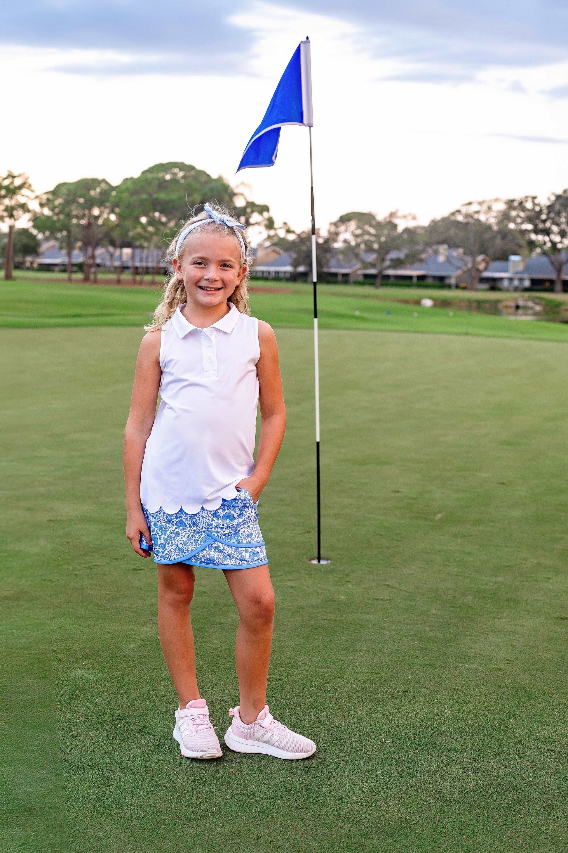 Tee off in style with our Girls Sadie Scalloped Hem Golf & Tennis Skort! Perfect for on and off the green, this skort offers a layered bottom for a unique look, fun prints and bright colors to stand out, and built-in shorts for added comfort. Serve up some personality with this playful and functional piece. Par-fect for your girls golfer or tennis star!