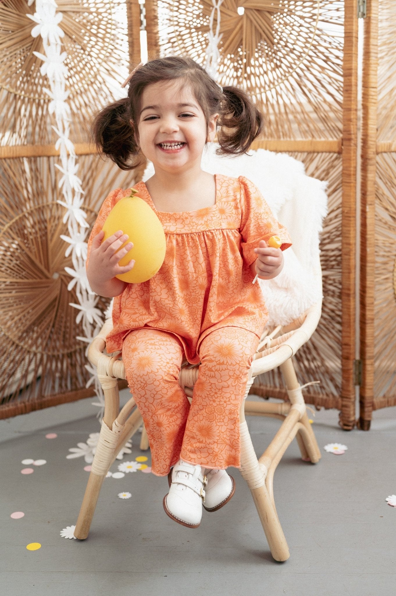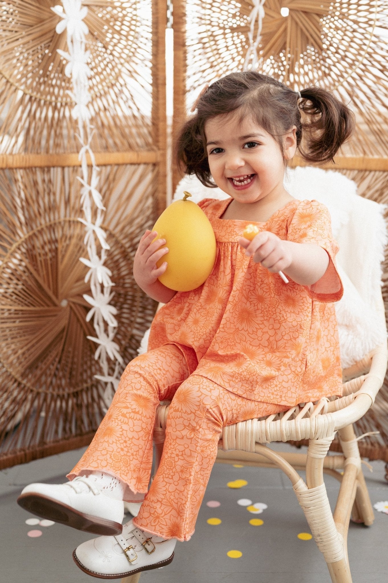 Groovy Pink and Orange Floral Bell Sleeve Top for Baby Toddler Girls