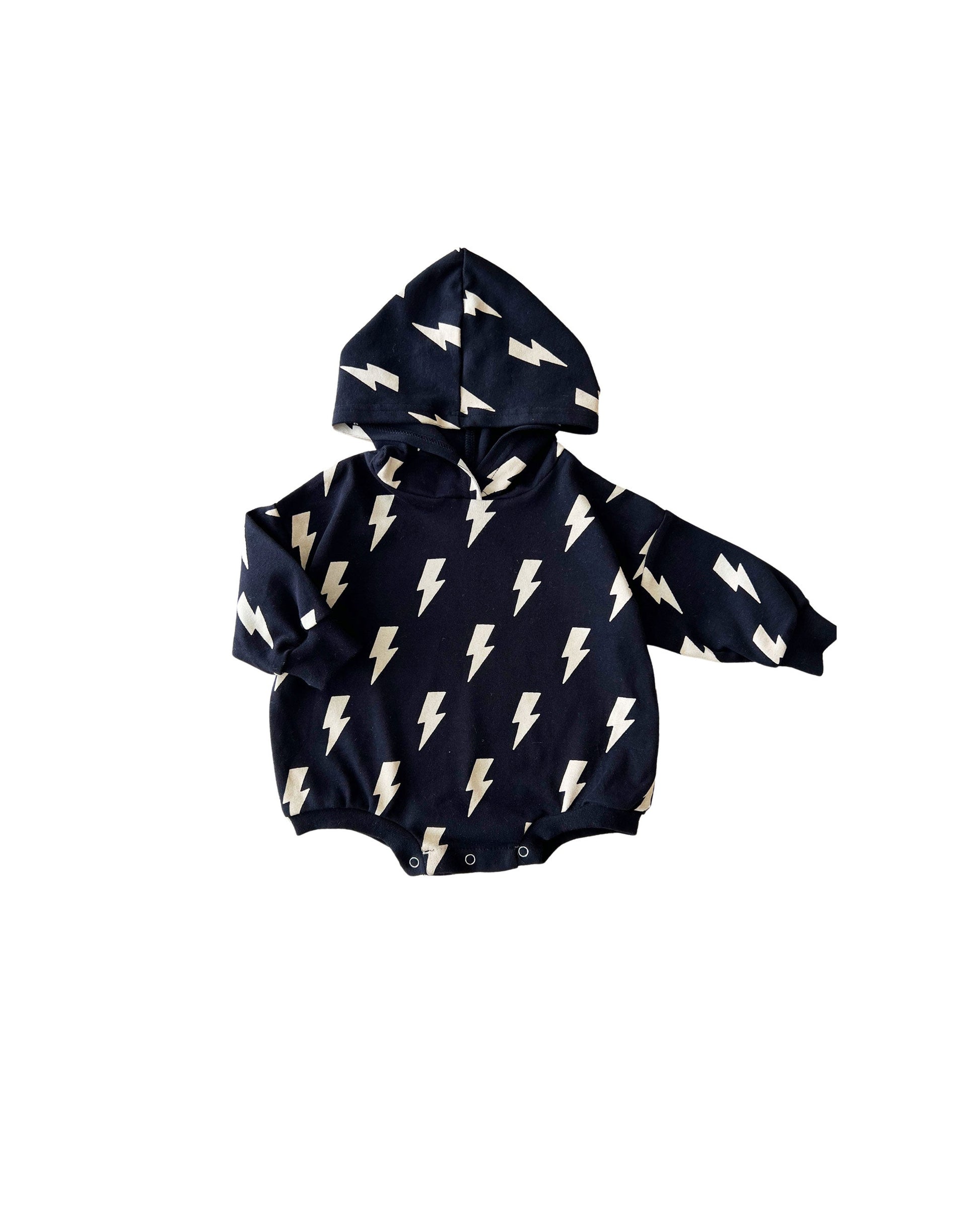 Hooded Bubble Romper | Black Bolts