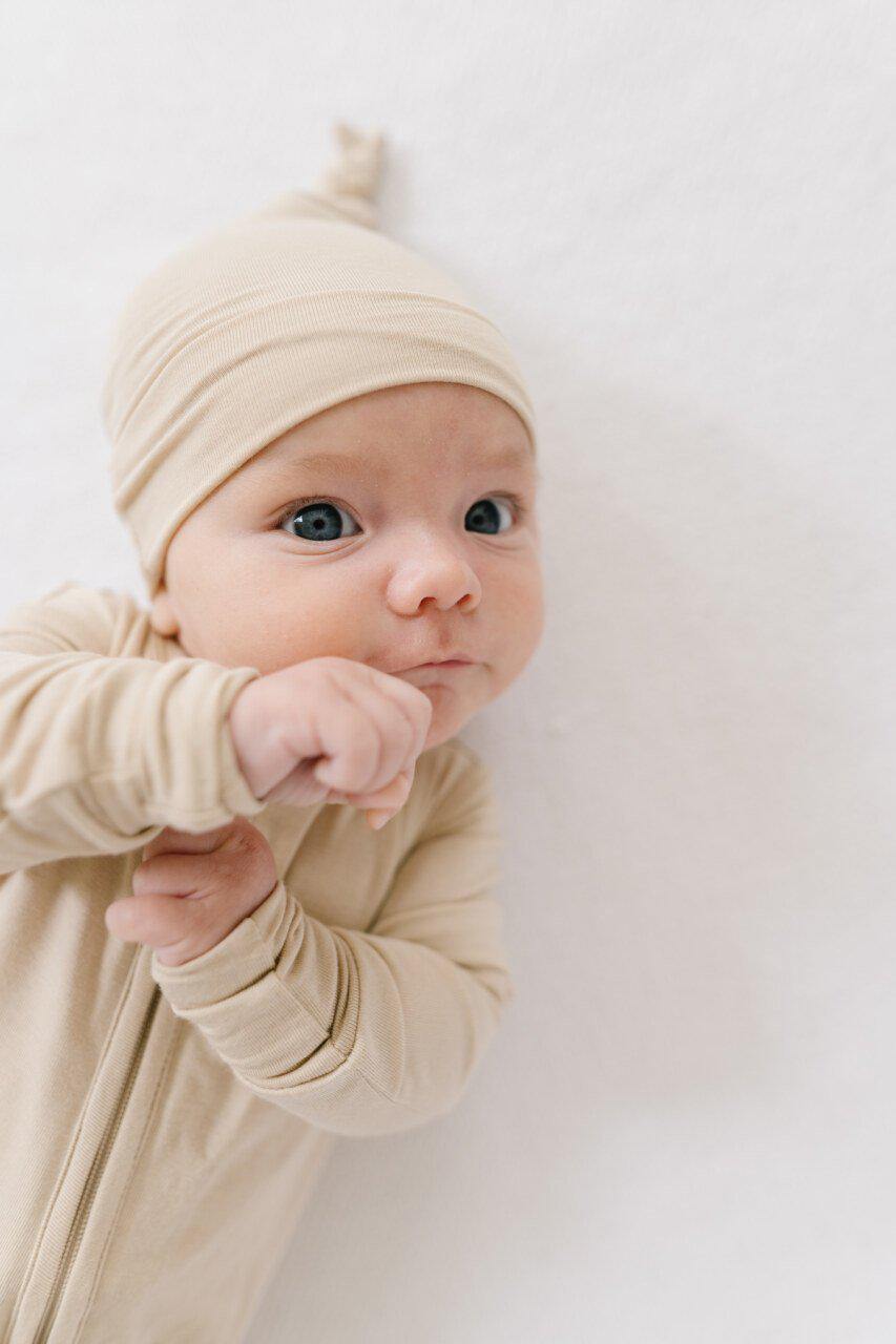 Featuring a classic knotted design, this hat adds an adorable touch to your baby’s outfit, making it a perfect choice for hospital visits, coming-home days, or everyday wear. The one-size-fits-most design ensures a snug yet comfortable fit from newborn up to 3 months, accommodating growing babies with ease.