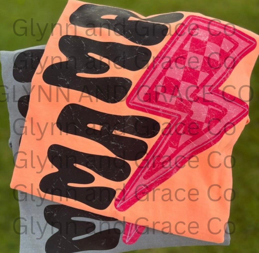 CUTE MAMA TSHIRT WITH VIBRANT LIGHTENING BULT (DTF ON COMFORT COLORS. COMMENT AT CHECKOUT IF YOU WANT REGULAR COMFORT COLOR OR BOXY SIZES IF NO COMMENT, REGULAR COMFORT COLORS WILL BE ORDERED