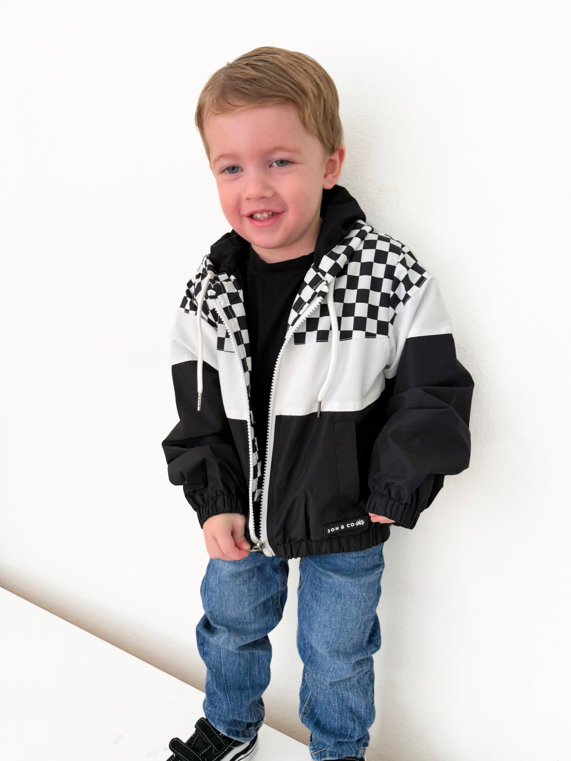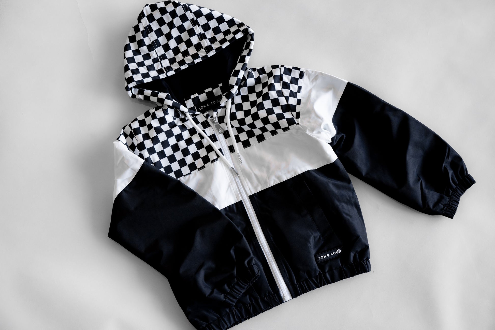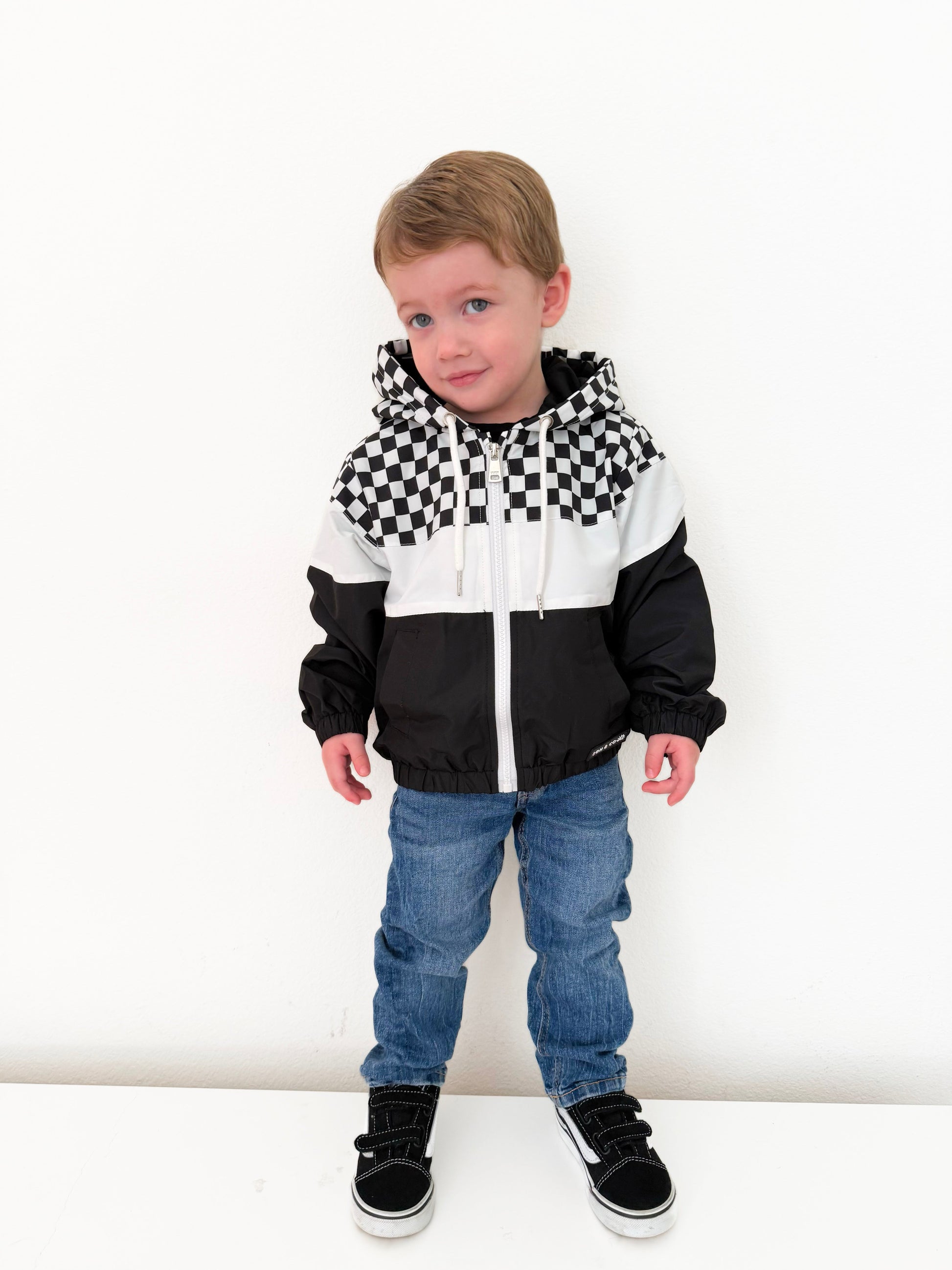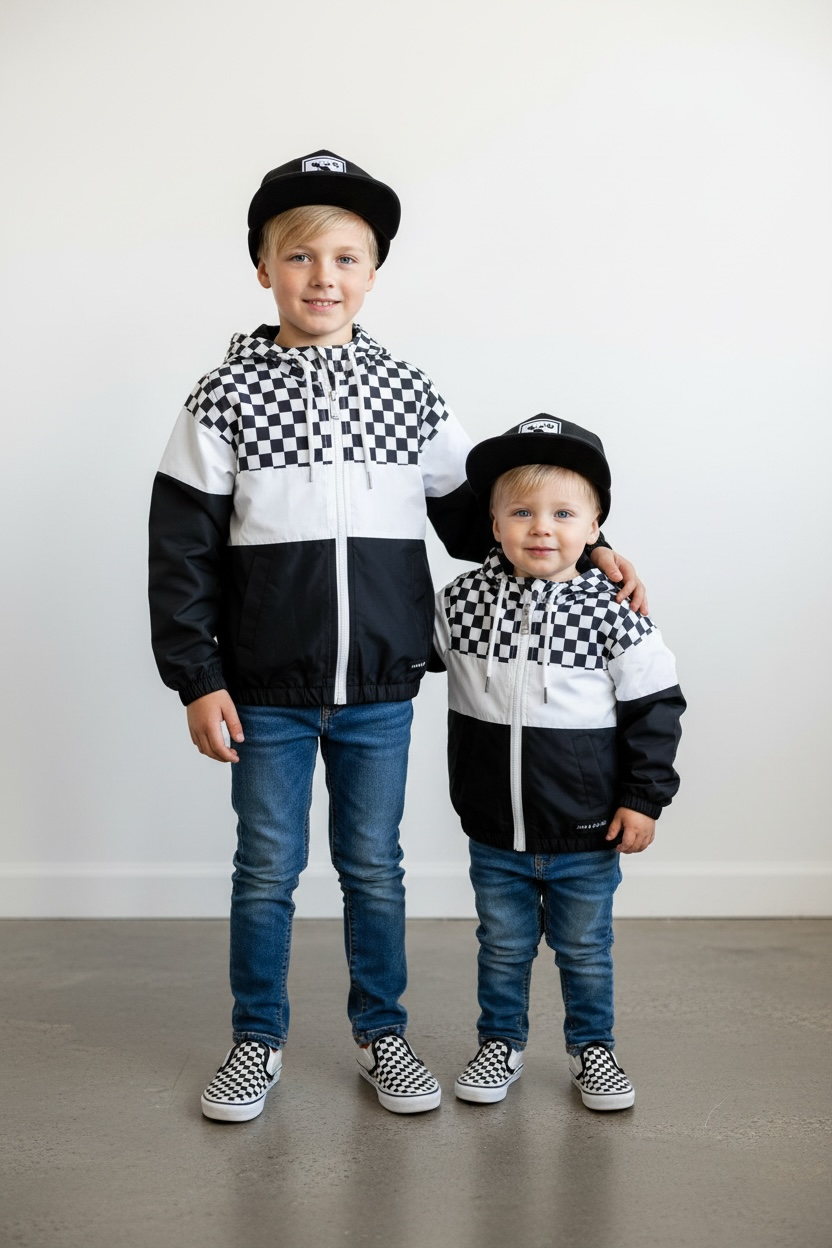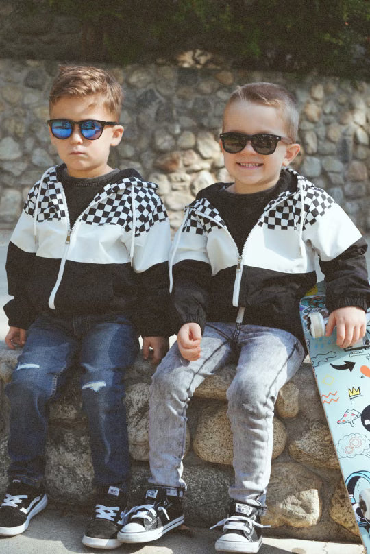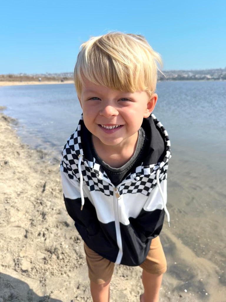 Introducing the Newport Windbreaker2.0 for Kids, a stylish and functional outerwear choice perfect for young adventurers. This windbreaker jacket features a striking color block design in classic black and white, enhanced with a trendy checkered detail that adds a touch of flair. Designed with practicality in mind, it is equipped with an easy-to-use zipper, ensuring a hassle-free experience for kids eager to get outdoors. This windbreaker provides protection against the elements while offering comfort and mobility. Ideal for school, play, or weekend outings, the Newport Windbreaker is a must-have addition to any child's wardrobe.