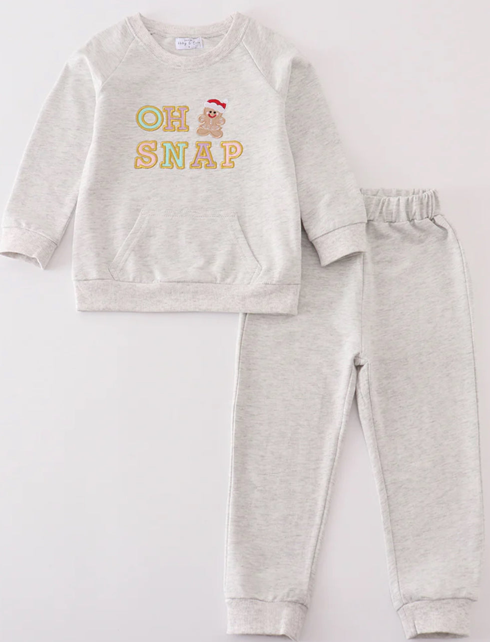 Get ready for holiday festivities with our oh-so-sweet Premium Beige Gingerbread Applique Oh Snap Boy Set! This charming ensemble features a playful gingerbread applique design and includes a snap button closure for easy dressing. Made with premium materials, it's the perfect outfit for your little one to rock this season!