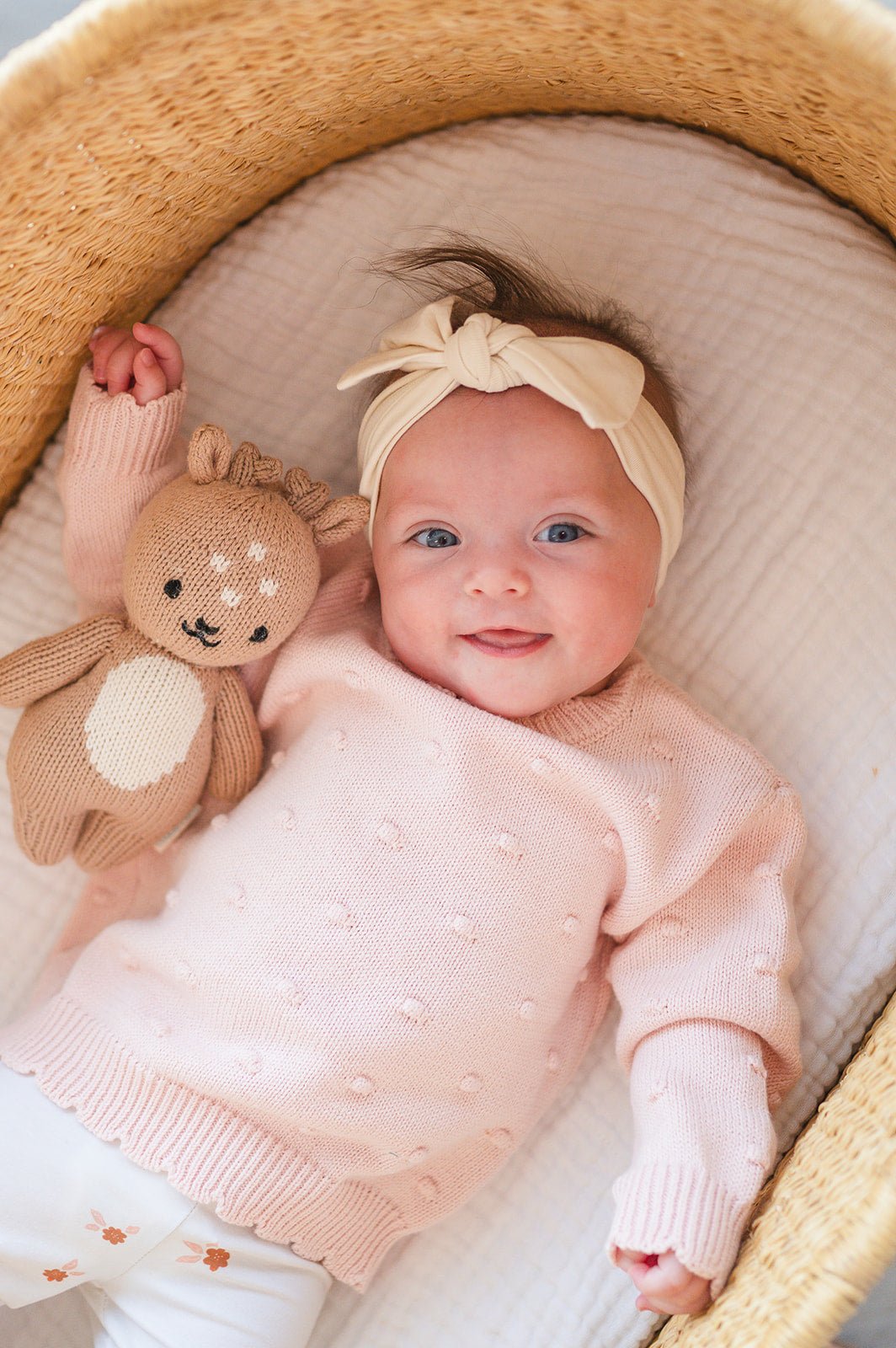 Our cozy and beautiful organic knit pink pom sweater is the perfect blend of style, comfort, and sustainability. Crafted with the finest organic fibers, this sweater is not only luxuriously soft but also environmentally friendly, making it a conscious choice for your wardrobe.