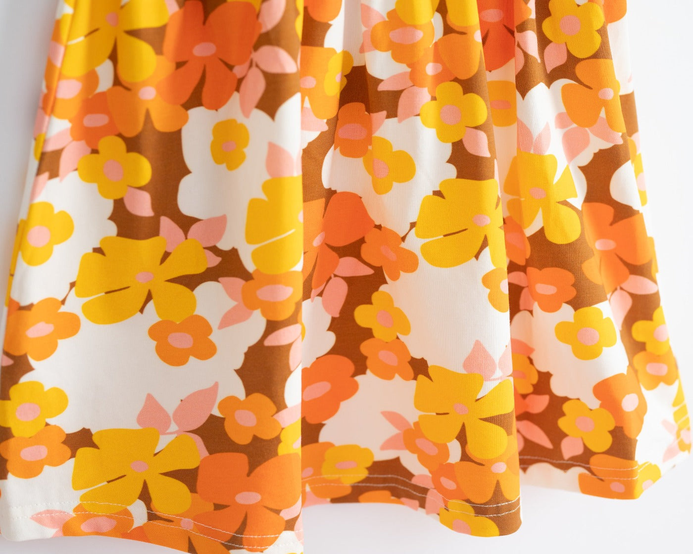 Cool Groovy Style: A cool groovy print in warm colors on a 70s inspired silhouette brings retro style to her wardrobe.