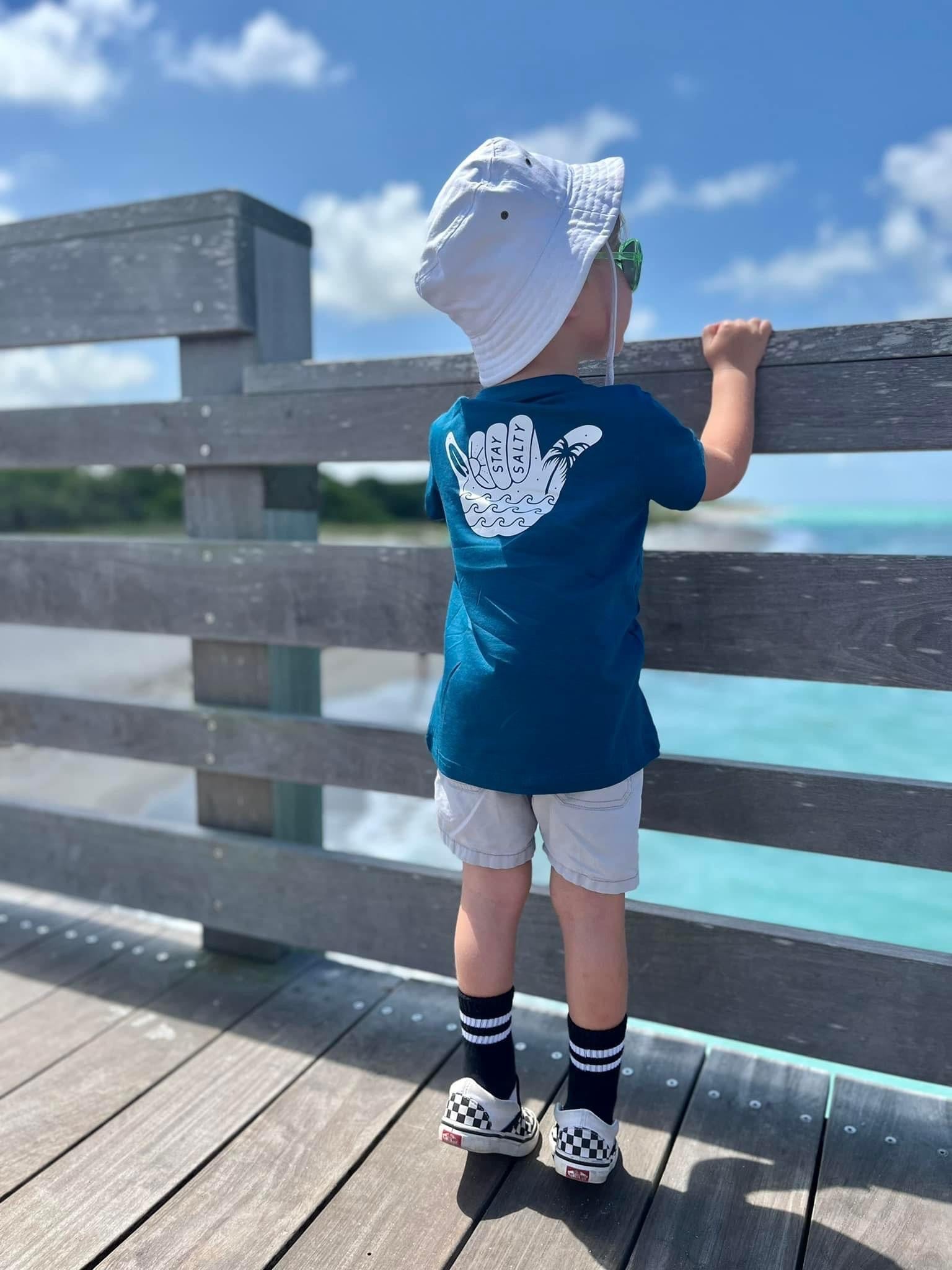 This T-shirt will become your kids favorite tee!! It’s a beautiful vibrant blue color on a one of a kind, exclusive Son & Co shirt. The screen print is so soft to touch. There is also no more neck tags!