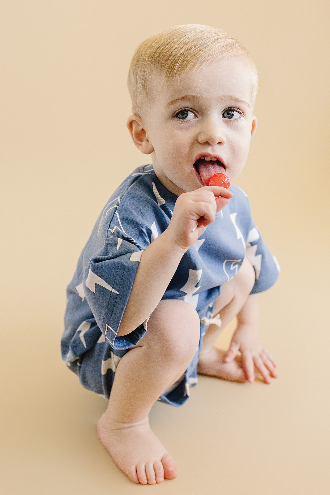 Light up their look with our Blue Bolts shorts set! Featuring a vibrant blue background with bold white lightning bolts, this set is perfect for little ones who love a fun, energetic design. Soft, comfortable, and made for active play, this set is perfect for any adventure.