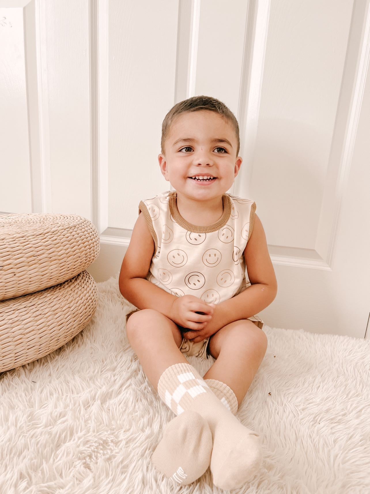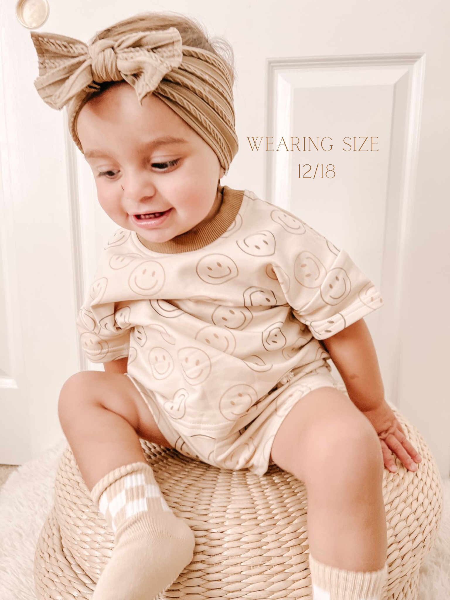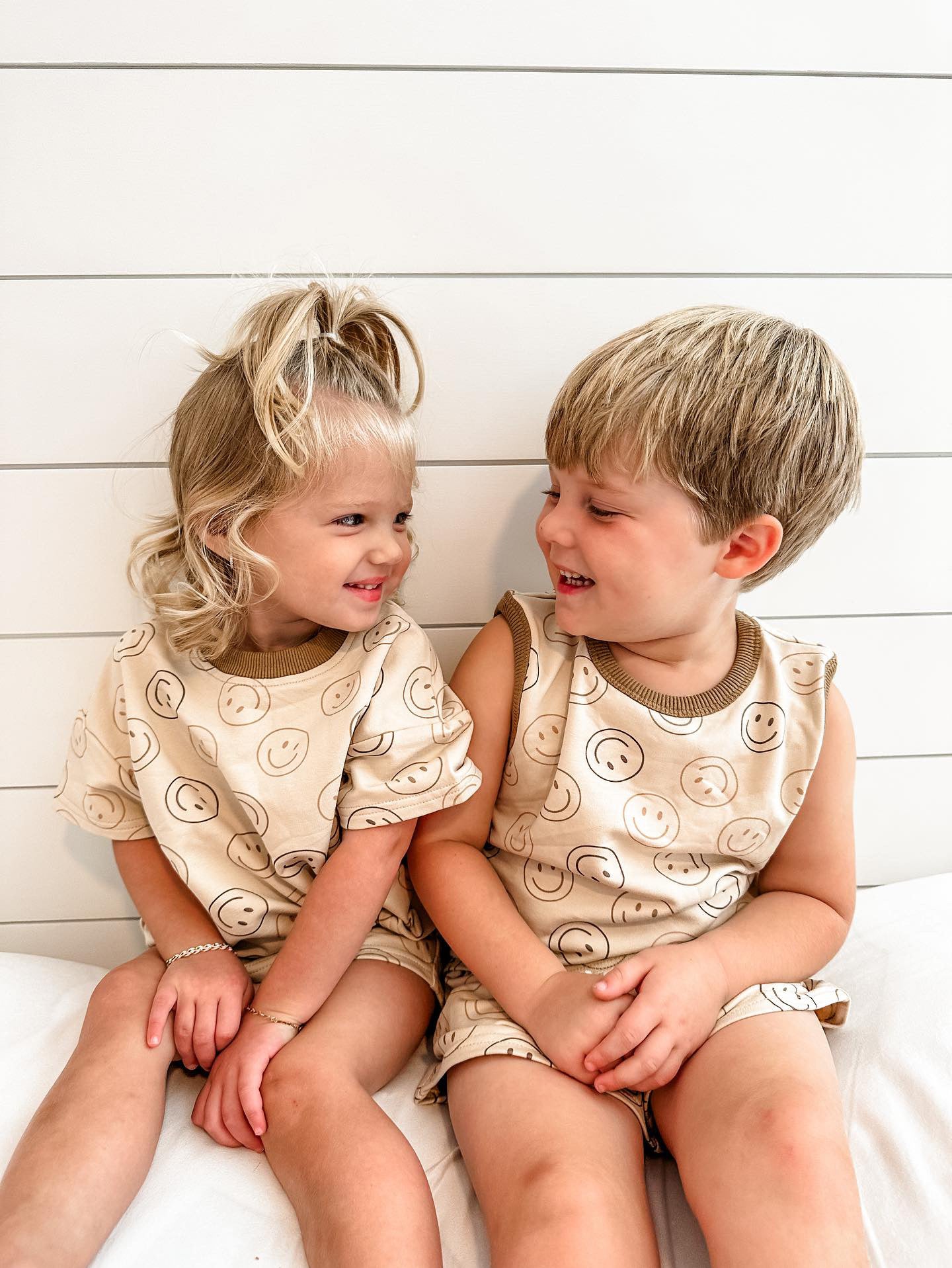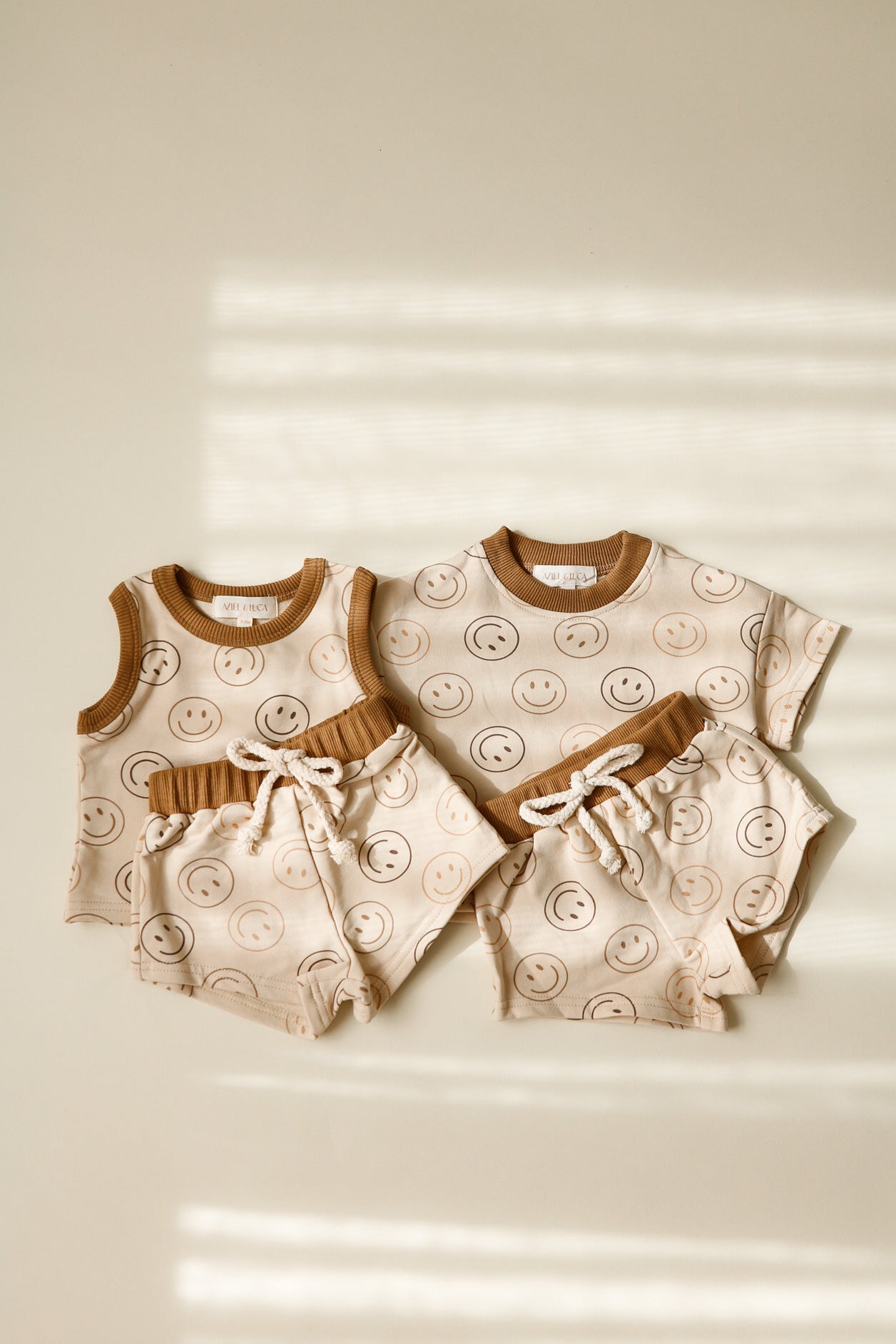 Introducing our Smileys Cotton/Spandex Short Set, designed to bring joy and comfort to your summer wardrobe. Crafted from a premium blend of cotton and spandex, this set combines softness with stretch for a fit that feels as good as it looks.