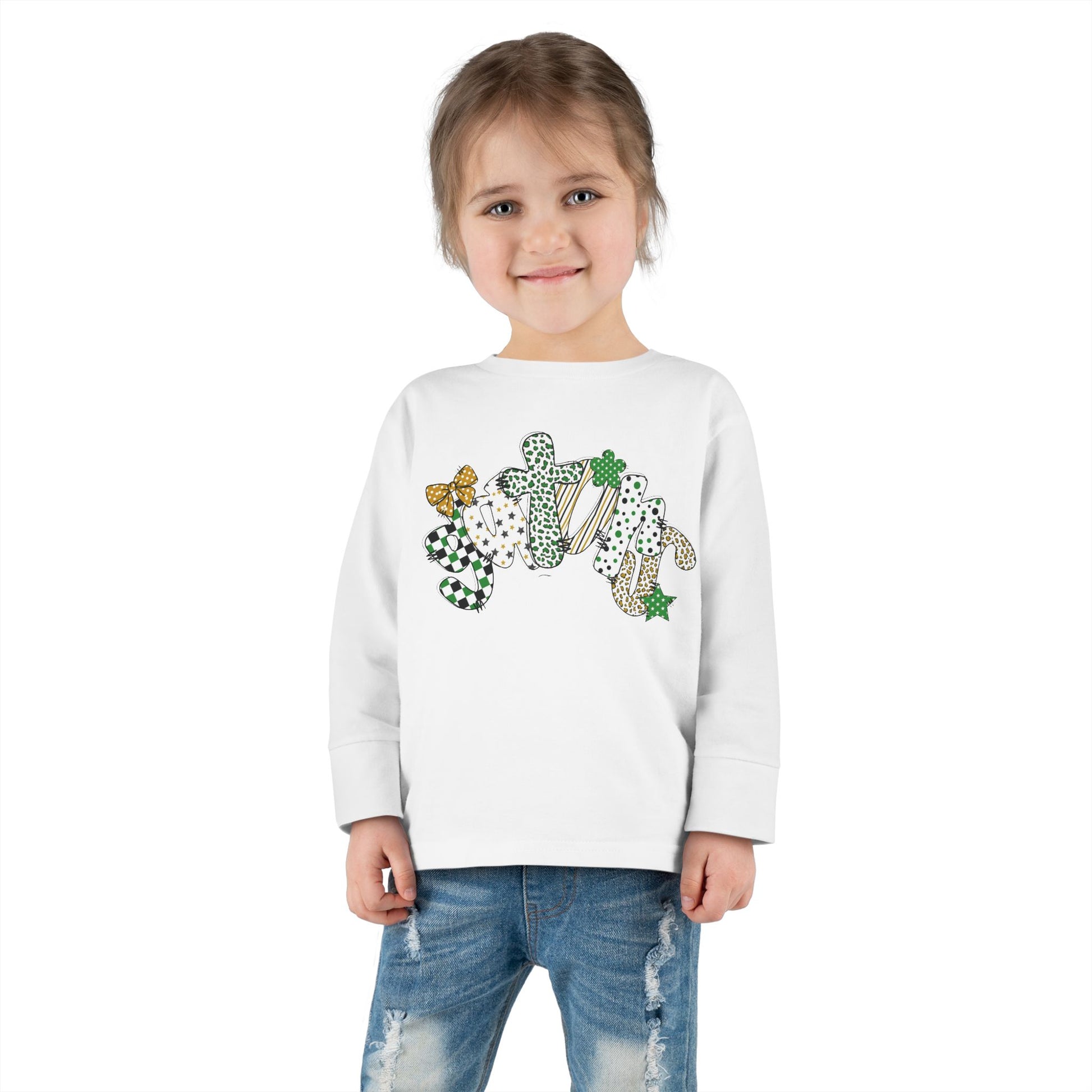 This charming Toddler Long Sleeve Tee is the ultimate blend of comfort and style for your little ones. Crafted from soft, lightweight fabric, it offers a cozy feel perfect for all-day wear. Its playful design brings a cheerful vibe, making it a delightful choice for any casual outing or playdate. Ideal for toddlers, this tee is perfect for birthdays, family gatherings, holiday celebrations, or simply a fun day out. Parents looking for quality and style will find this piece meets all their needs for versatile kids' clothing. Whether it's for everyday wear or special occasions like St. Patrick's Day, this tee will quickly become a favorite in your child's wardrobe.