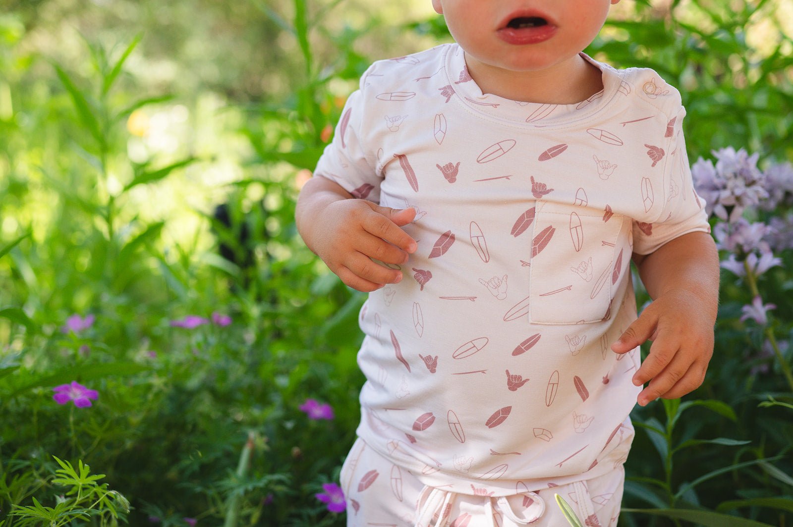 Our Surf Bamboo short set is designed to be soft and lightweight with the perfect amount of stretch. Features a pocket shirt and shorts with functional pockets and drawstring. Bamboo is amazingly soft and gentle on the skin.