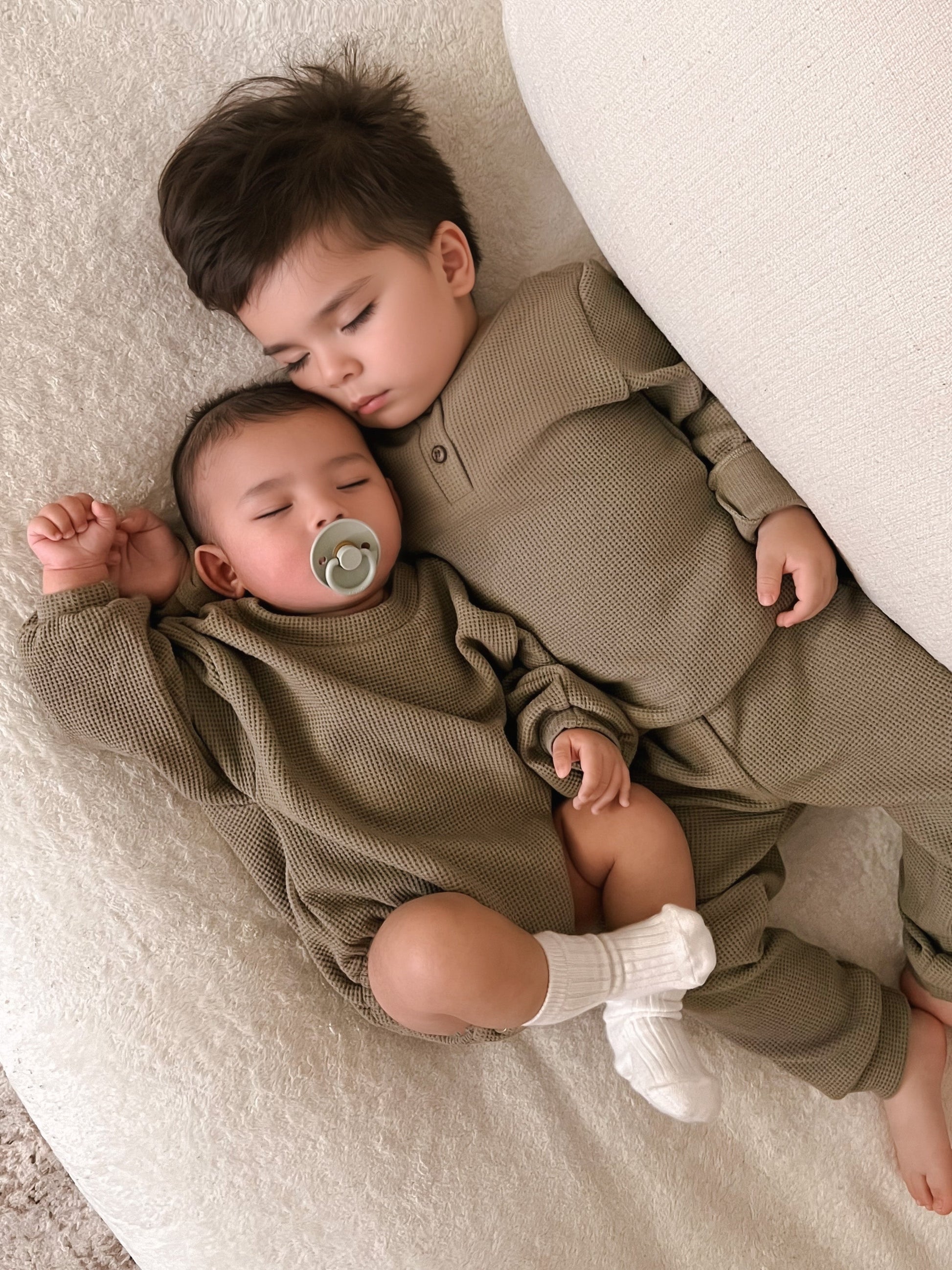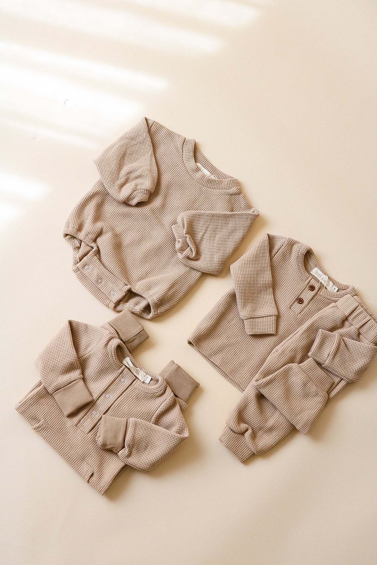 Introducing our Signature Family Waffle Sets, a timeless collection from Aziel & Luca. Crafted with meticulous attention to detail and made from premium waffle-knit fabric, our coordinating sets offer unparalleled comfort and style for every member of the family. From the tiniest tots to the most discerning adults, our matching ensembles feature soft, neutral tones that exude sophistication and warmth. Whether you're snuggled up at home or stepping out for a day of adventure, our Family Waffle Sets ensure you and your loved ones are dressed in coordinated elegance. Create unforgettable moments and cherish every precious memory with Aziel & Luca.