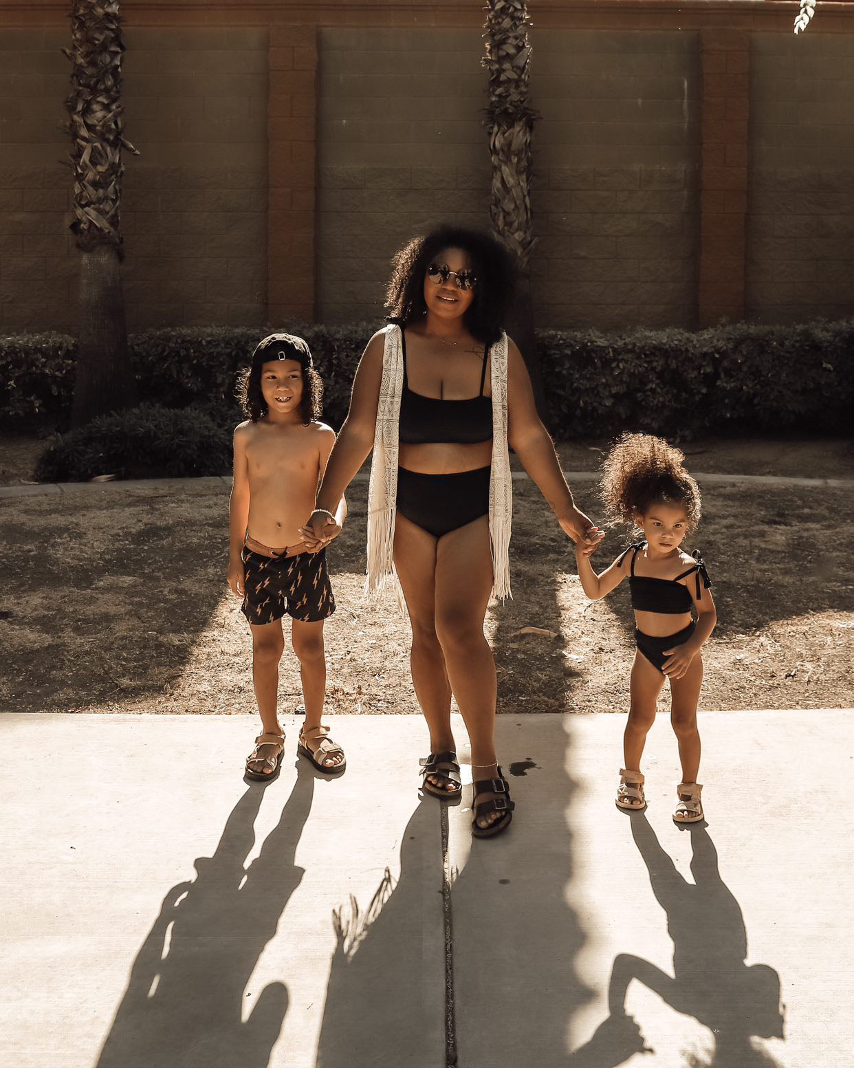 Introducing our stylish and chic Mommy & Me swimwear set, perfect for making memories by the pool or beach with your little one! This two-piece set features a versatile black color and high-waisted bottoms for a flattering fit. The top is designed with adjustable straps for a customizable and comfortable feel. Whether you're splashing in the waves or lounging in the sun, this matching set is sure to make a statement and create lasting memories with your mini me. Dive into summer in style with our Mommy & Me swimwear set!